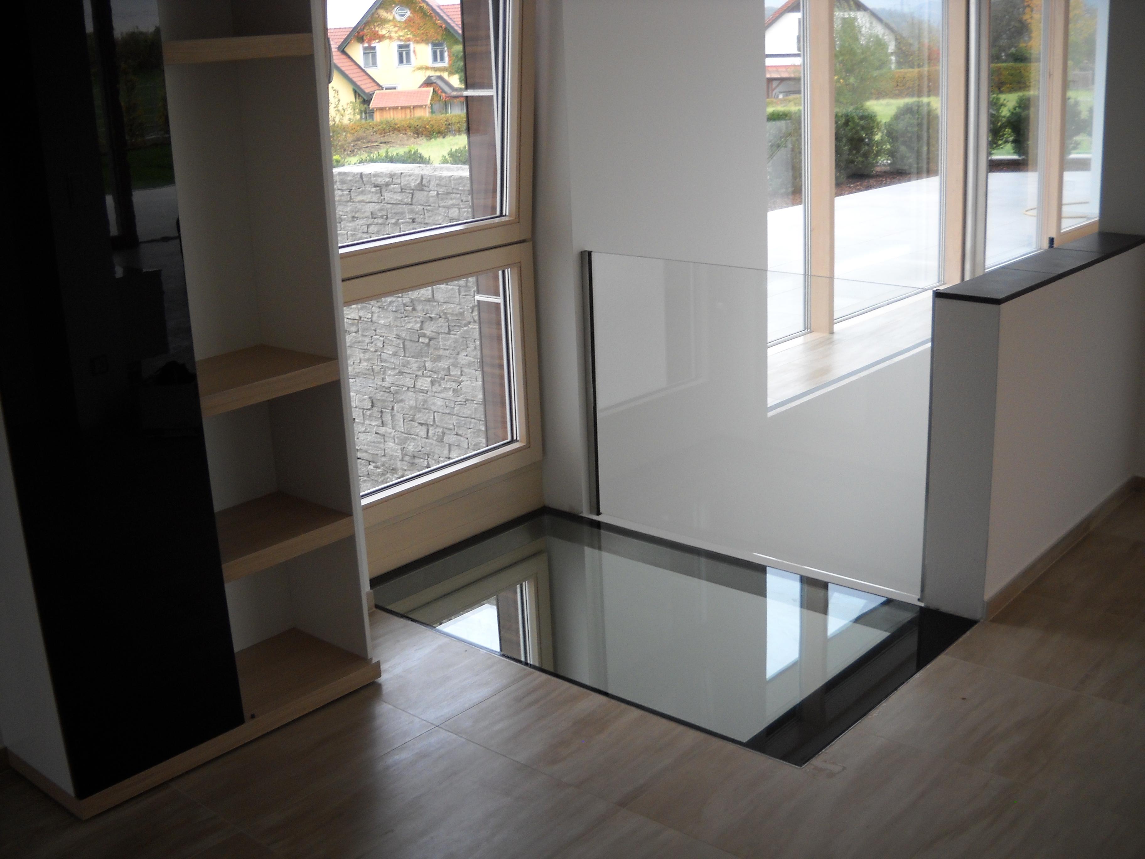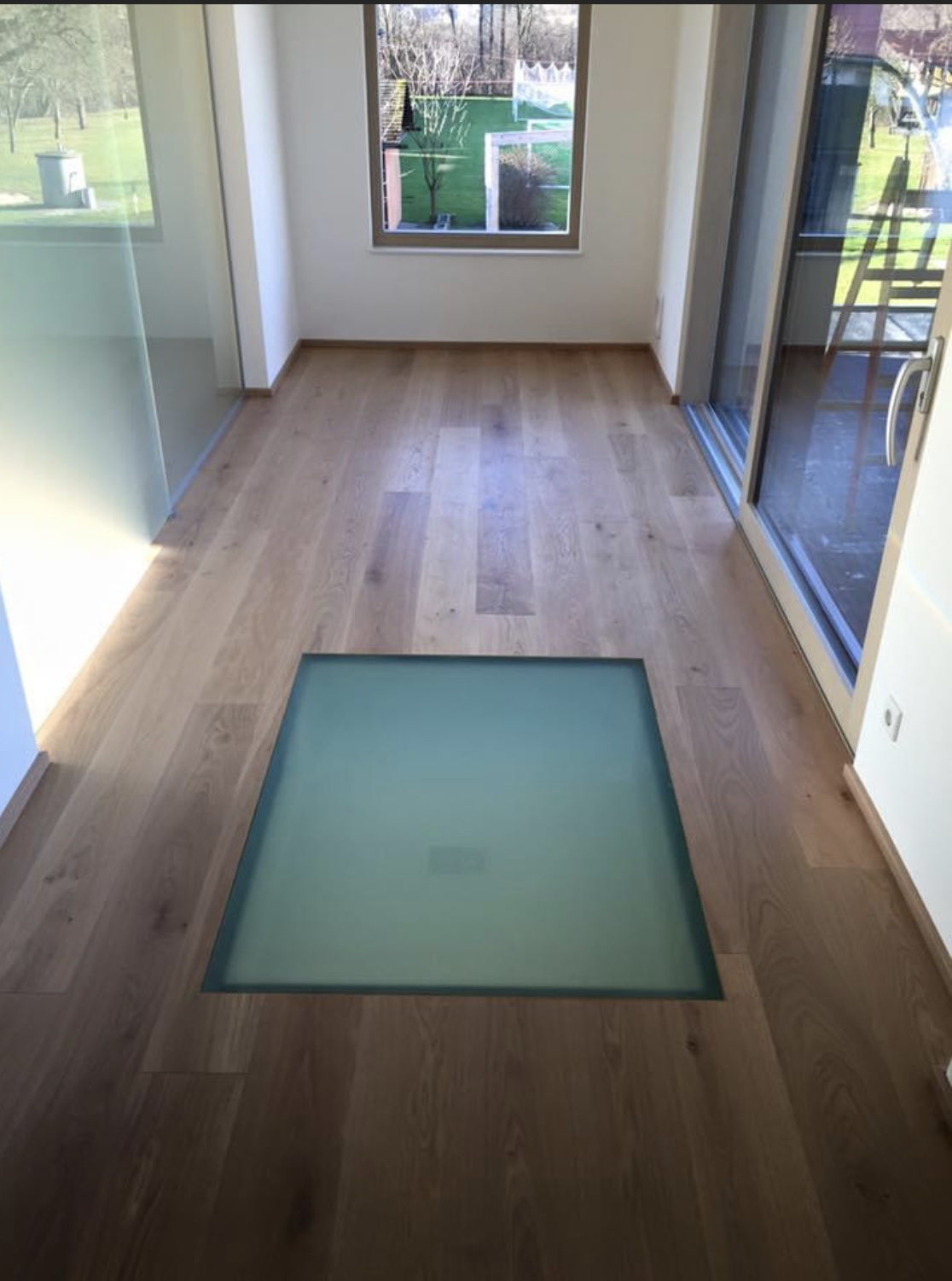 Ein wenig schwindelfrei sollte man schon sein, wenn man sich einen begehbaren Glasboden anschafft. Aber: Keine Angst! Das besonders starke Sicherheitsglas trägt Sie mit Sicherheit.