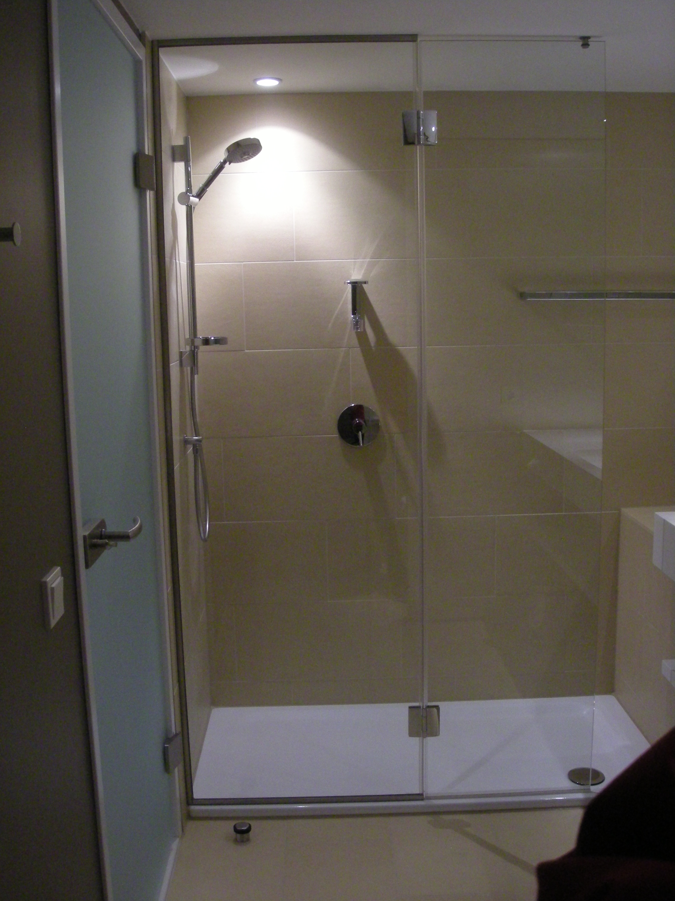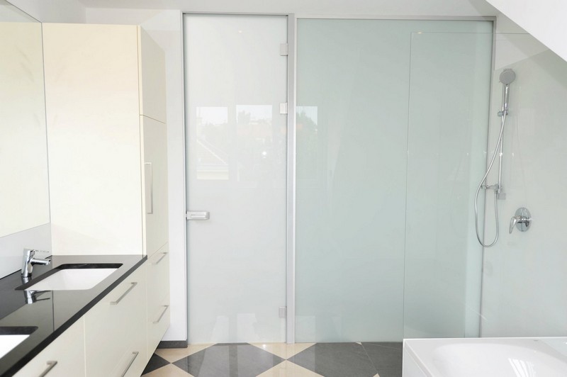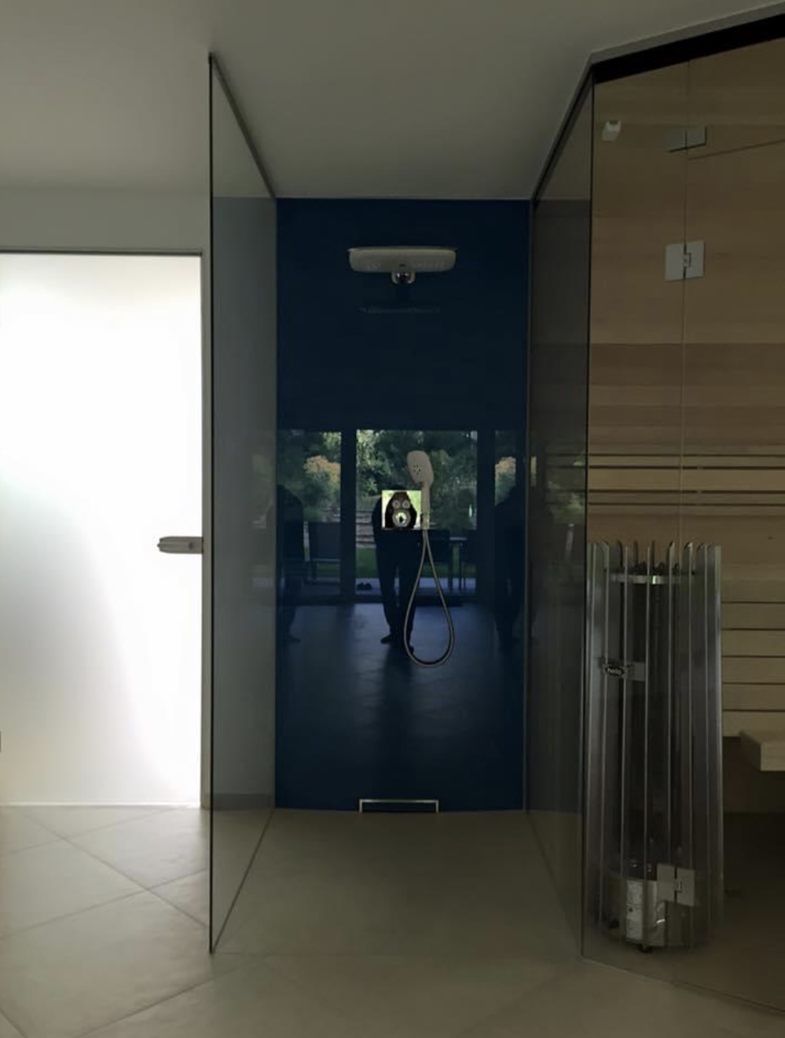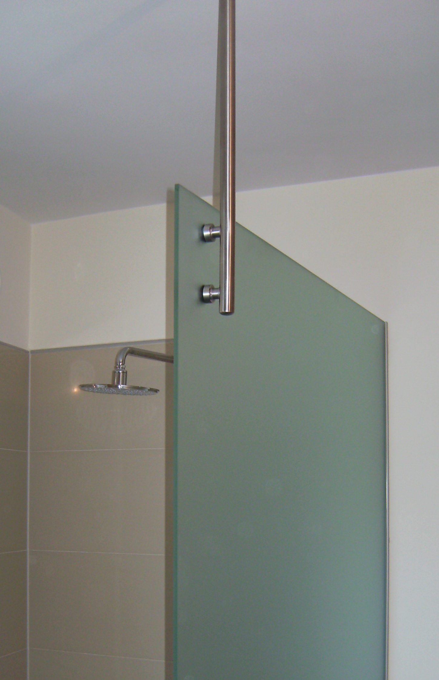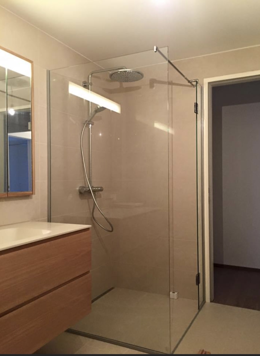 Unsere maßgefertigten Spritzschutzwände und -türen sind mit verschiedenen Scharnieren, Griffen, und Gläsern individuell an Ihre Einbausituation angepasst.
