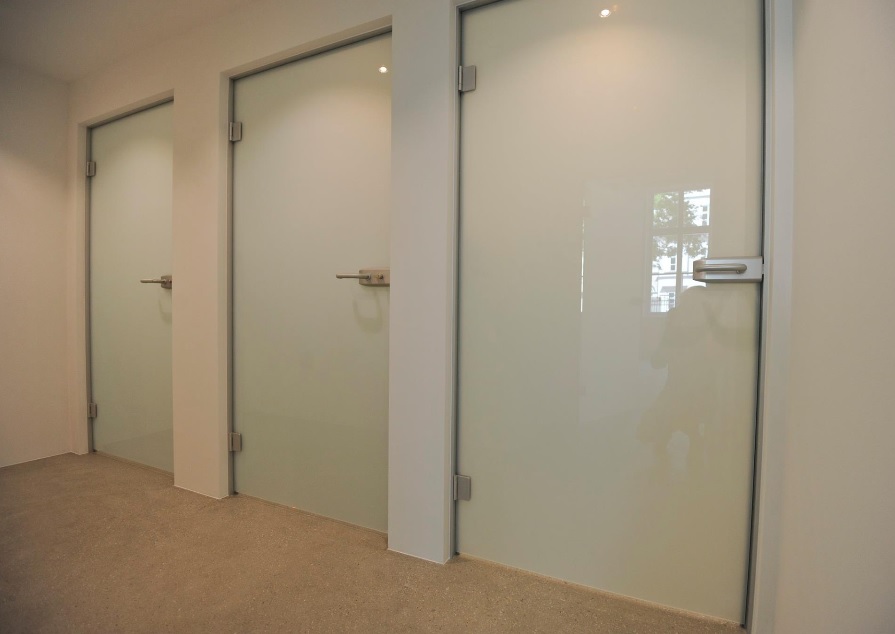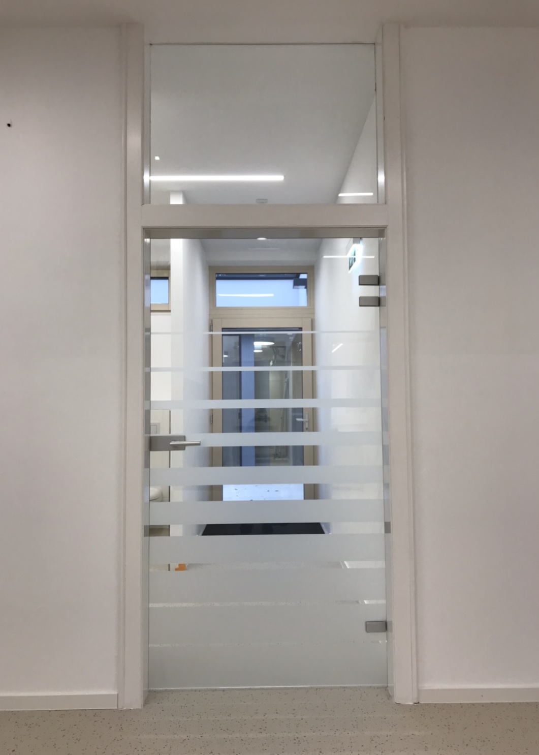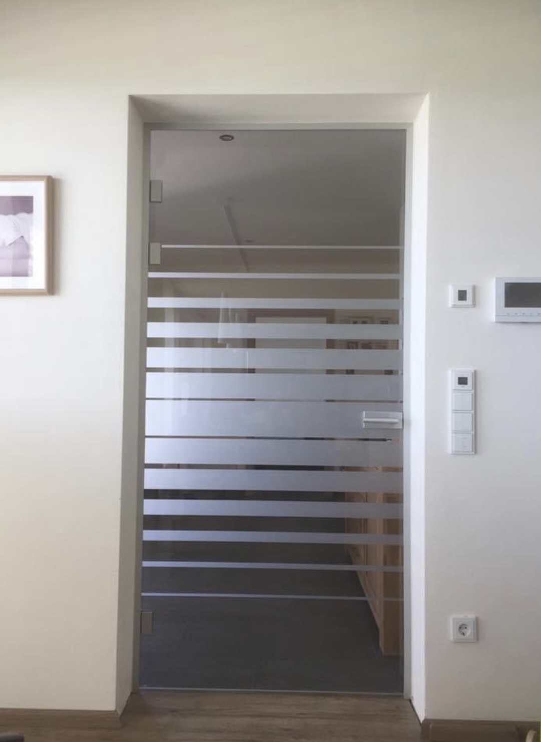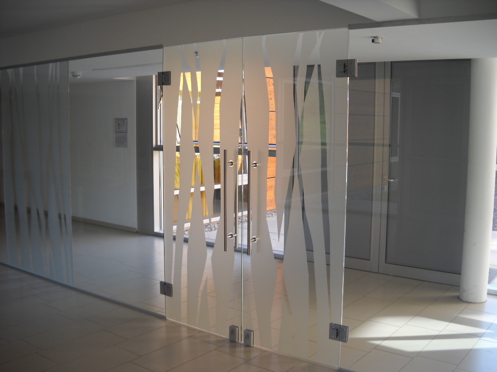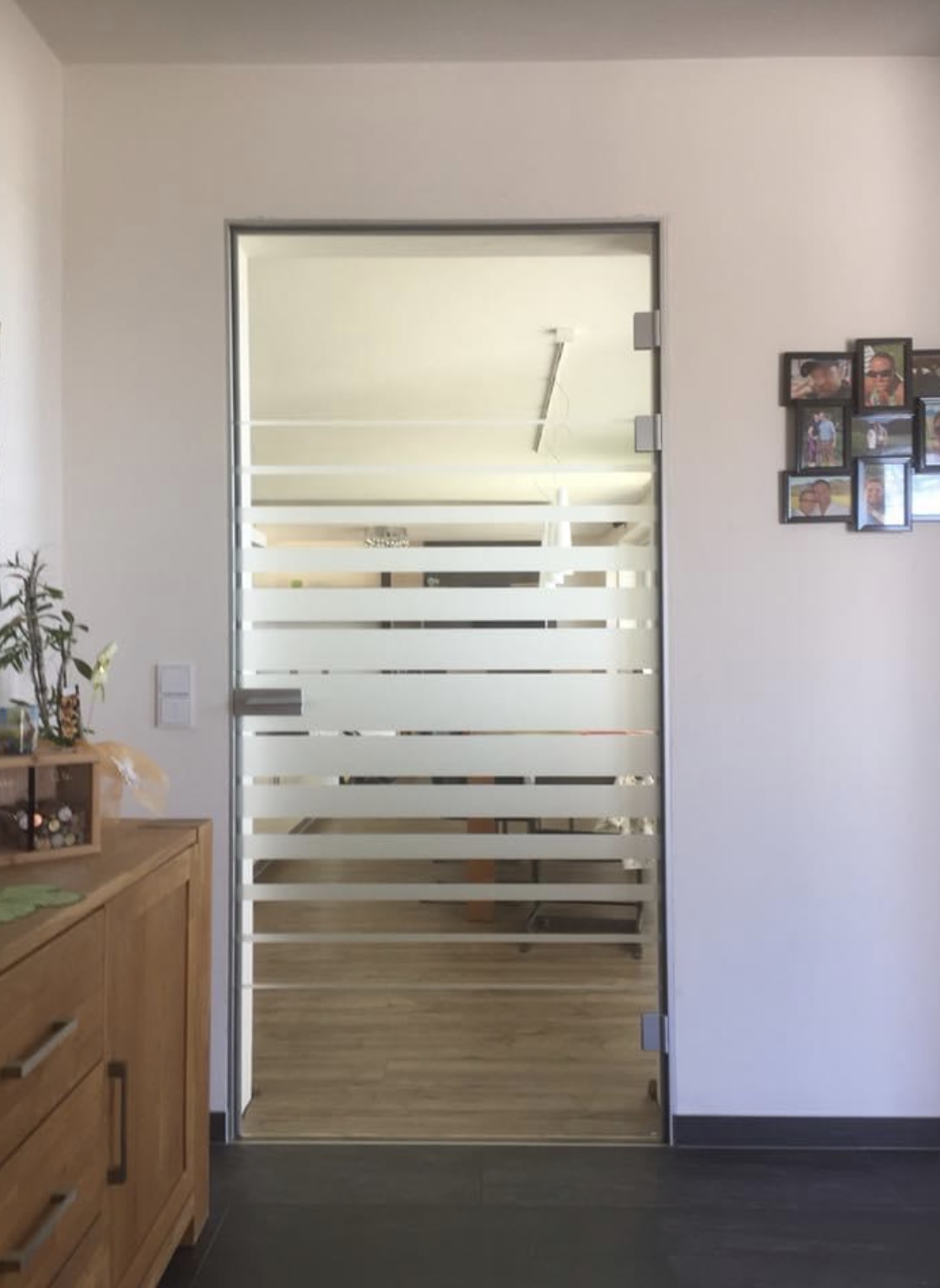 Ganzglastüren klar, satiniert, foliert oder bedruckt