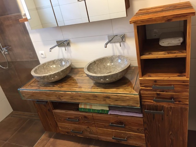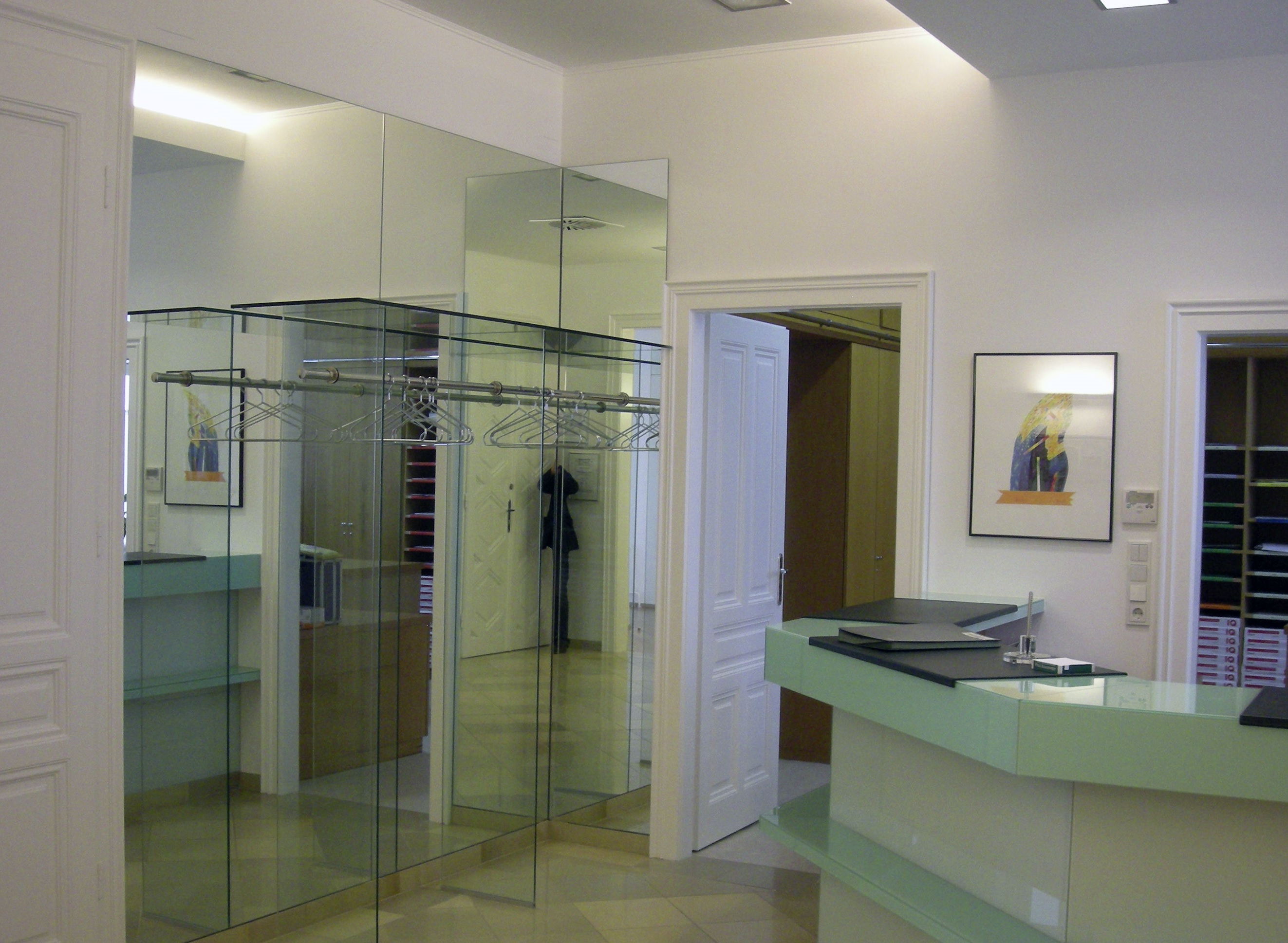 Im Möbelbau ist Glas ein altbewährtes Material. Es können alle Methoden der Glasveredelung zum Tragen kommen: mattieren, emaillieren, verspiegeln, bedrucken uvm. und die Verklebung mit UV-härtenden Klebstoffen garantiert eine saubere, unsichtbare Verklebung.