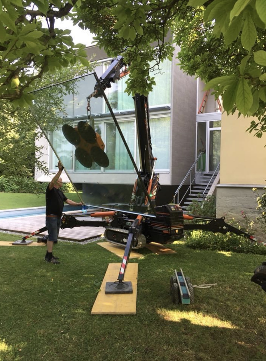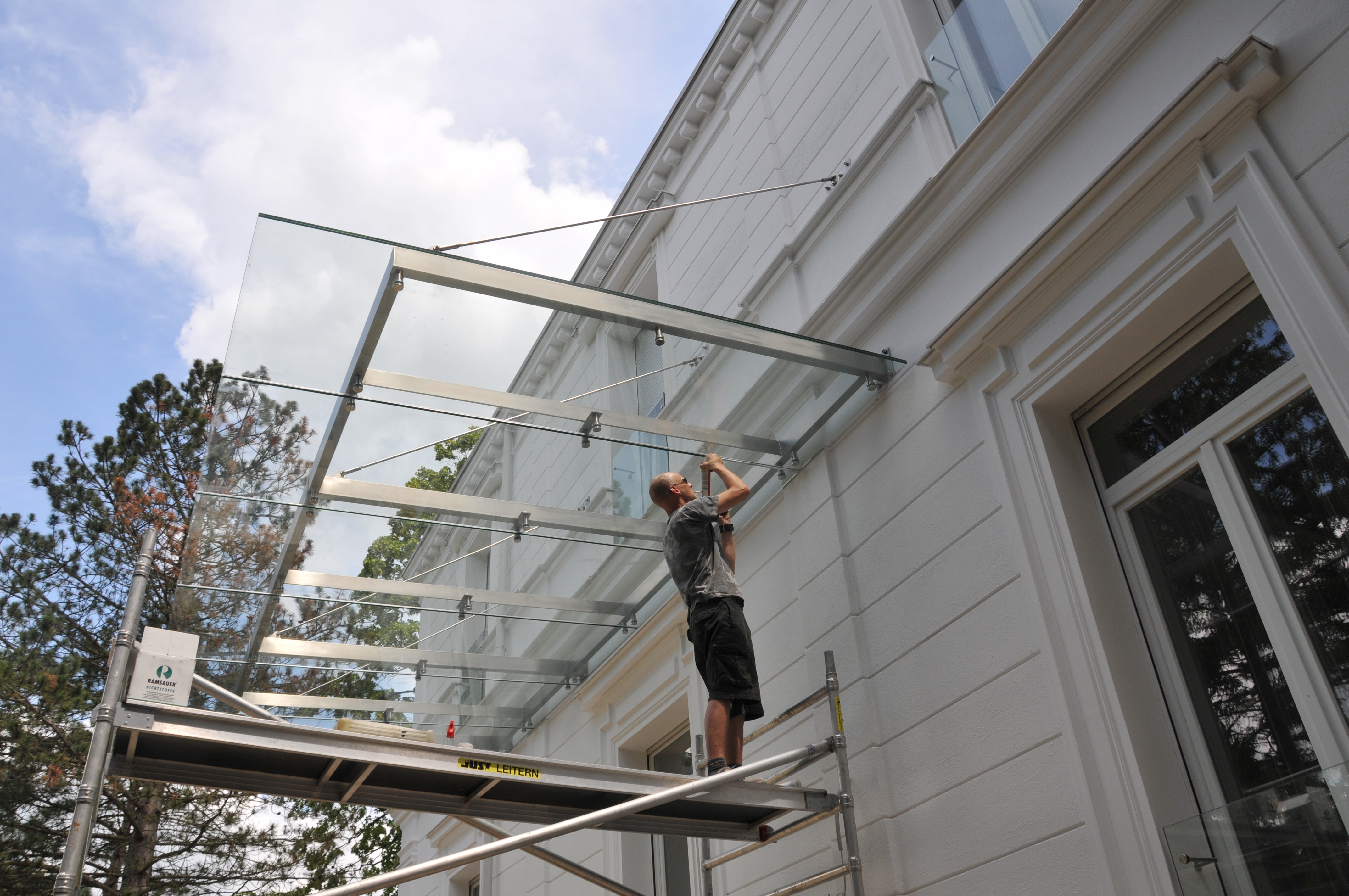 Genau genommen ist jedes unserer Produkte bzw. jede Lösung eine Sonderanfertigung, da wir alles auf Maß und nach Kundenwunsch produzieren. Dennoch ergibt sich oft durch die gegebenen Baulichkeiten oder durch das Gewicht des gewünschten Glases eine schwierige Einbausituation, die nur mit großem Engagement und Know-How gelöst werden kann.