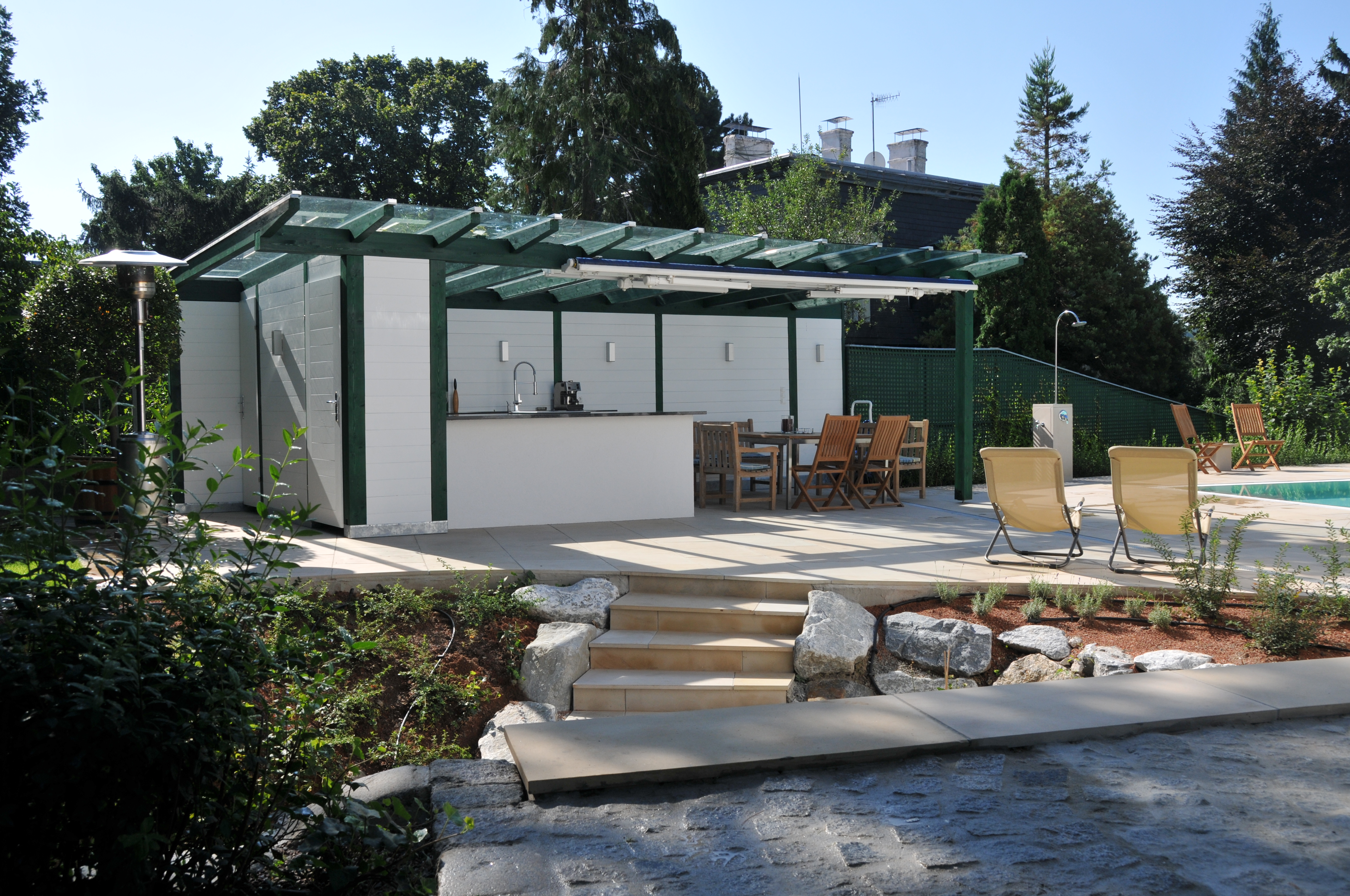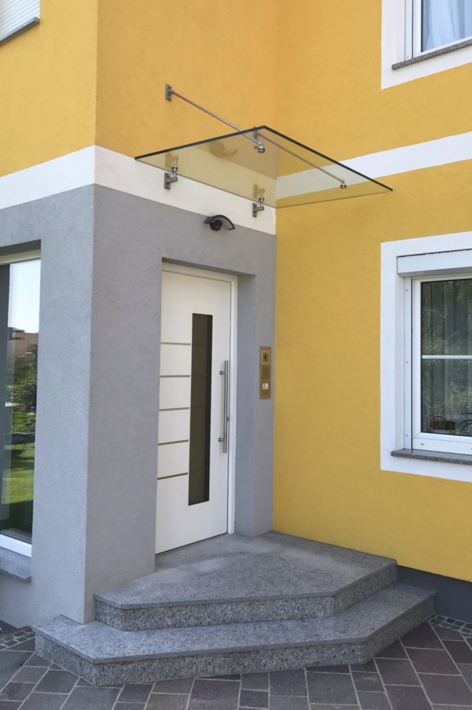 Überdachungen aus Glas bieten nicht nur Schutz vor Regen, Wind und Schnee, sondern lassen auch mehr Helligkeit ins Haus. Klares Design und hochwertiges Material fügen sich dabei zeitlos in jede Architektur ein und können wesentlich zur Verschönerung der Außenansicht beitragen. Hochwertige Materialien wie Edelstahl und Verbundsicherheitsglas sind hoch belastbar und langlebig.