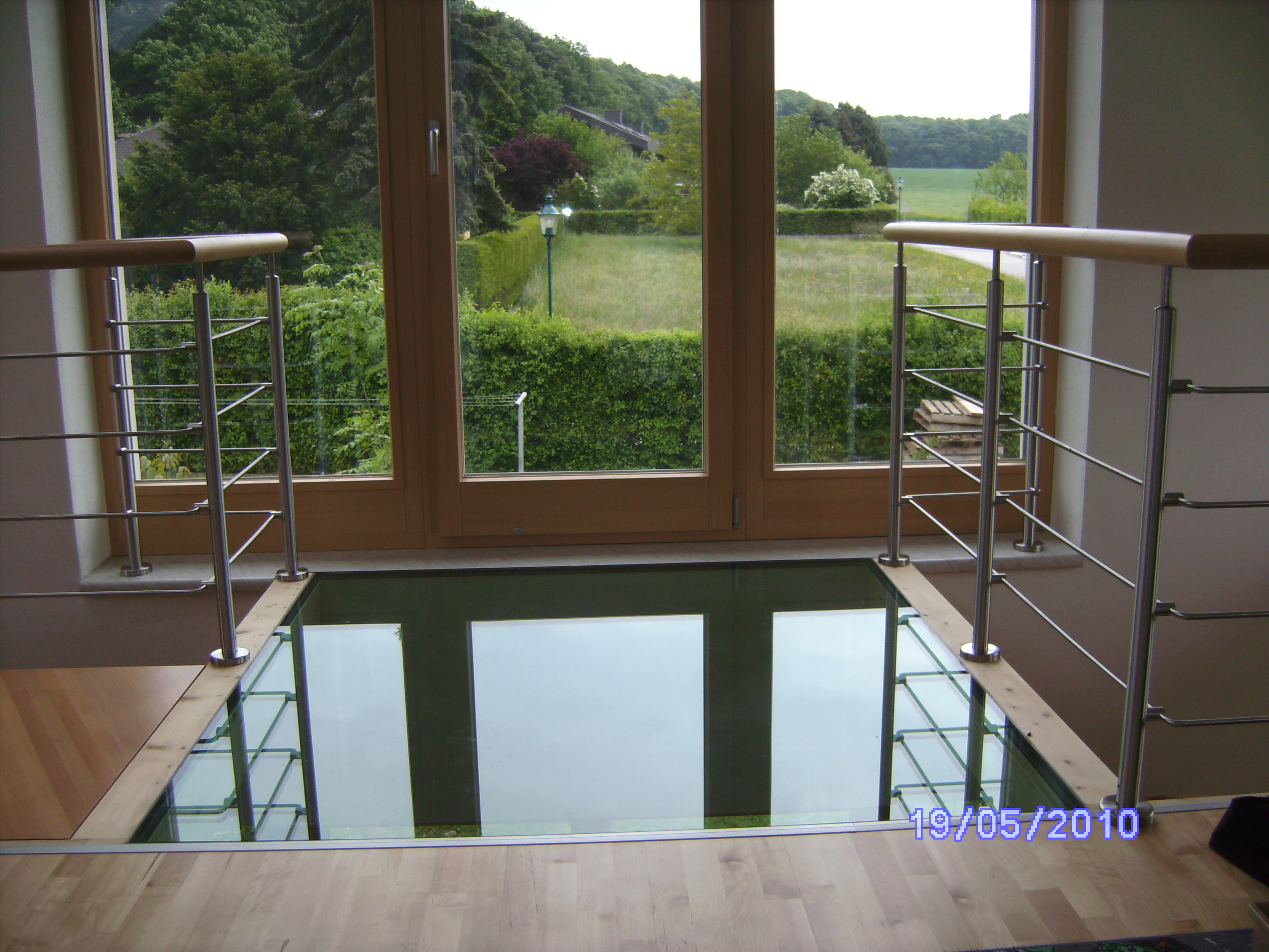 Ein wenig schwindelfrei sollte man schon sein, wenn man sich einen begehbaren Glasboden anschafft. Aber: Keine Angst! Das besonders starke Sicherheitsglas trägt Sie mit Sicherheit.