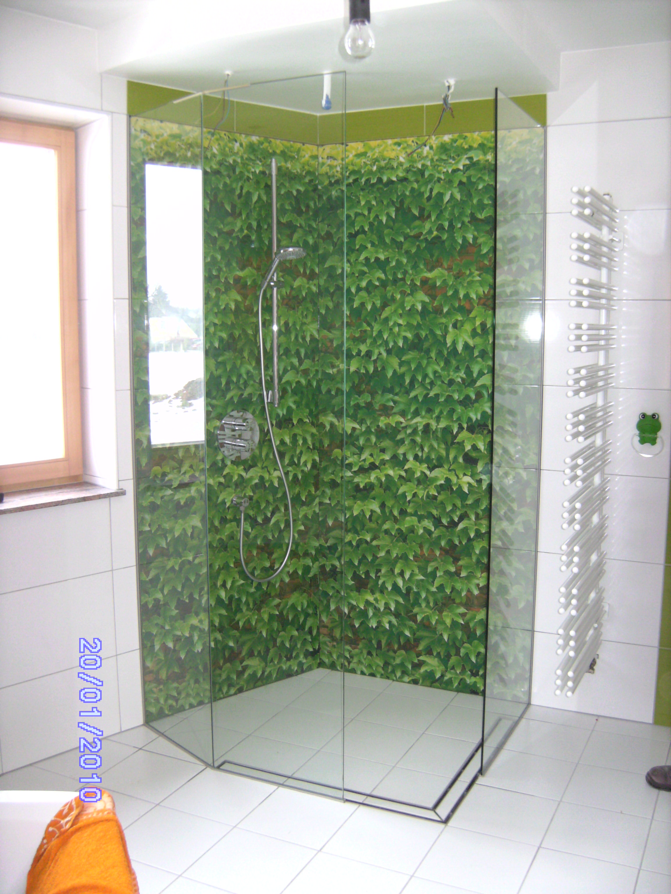 Auch durch bedrucken und folieren kann Ihre Duschlösung zu etwas ganz Besonderem werden - wir informieren Sie gerne über die verschiedensten Designs!