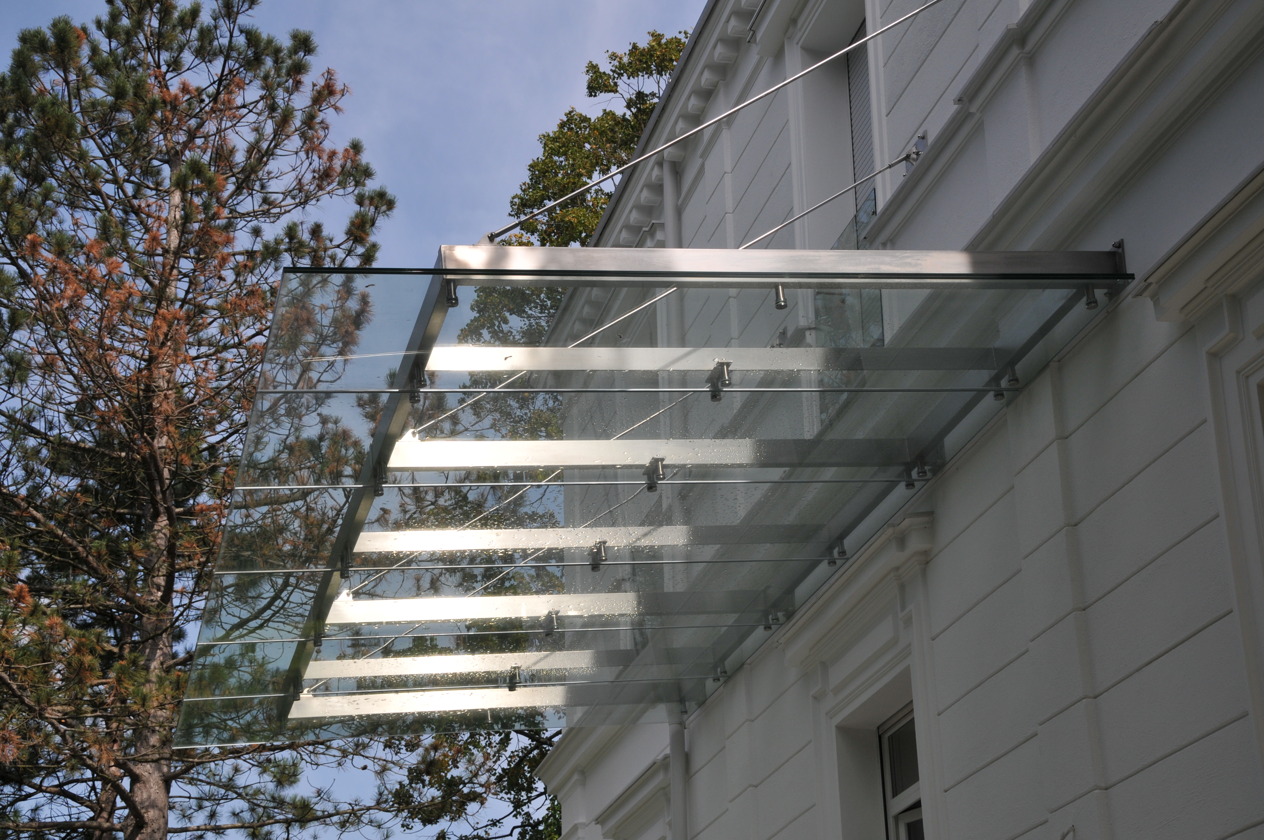 Überdachungen aus Glas bieten nicht nur Schutz vor Regen, Wind und Schnee, sondern lassen auch mehr Helligkeit ins Haus. Klares Design und hochwertiges Material fügen sich dabei zeitlos in jede Architektur ein und können wesentlich zur Verschönerung der Außenansicht beitragen. Hochwertige Materialien wie Edelstahl und Verbundsicherheitsglas sind hoch belastbar und langlebig.